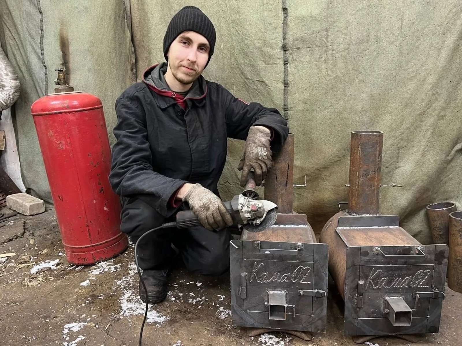 «Днём я работаю на заводе электромонтером. После работы иду с отцом в гараж, затапливаем буржуйку и начинаем делать маленькие печки ребятам в блиндажи. Когда начало холодать, я подумал: раз мне холодно, значит пацанам в блиндажах тоже холодно. Мы с отцом немного переделали конструкцию по примеру других ребят и начали делать их уже по-своему», – рассказывает Радмир.