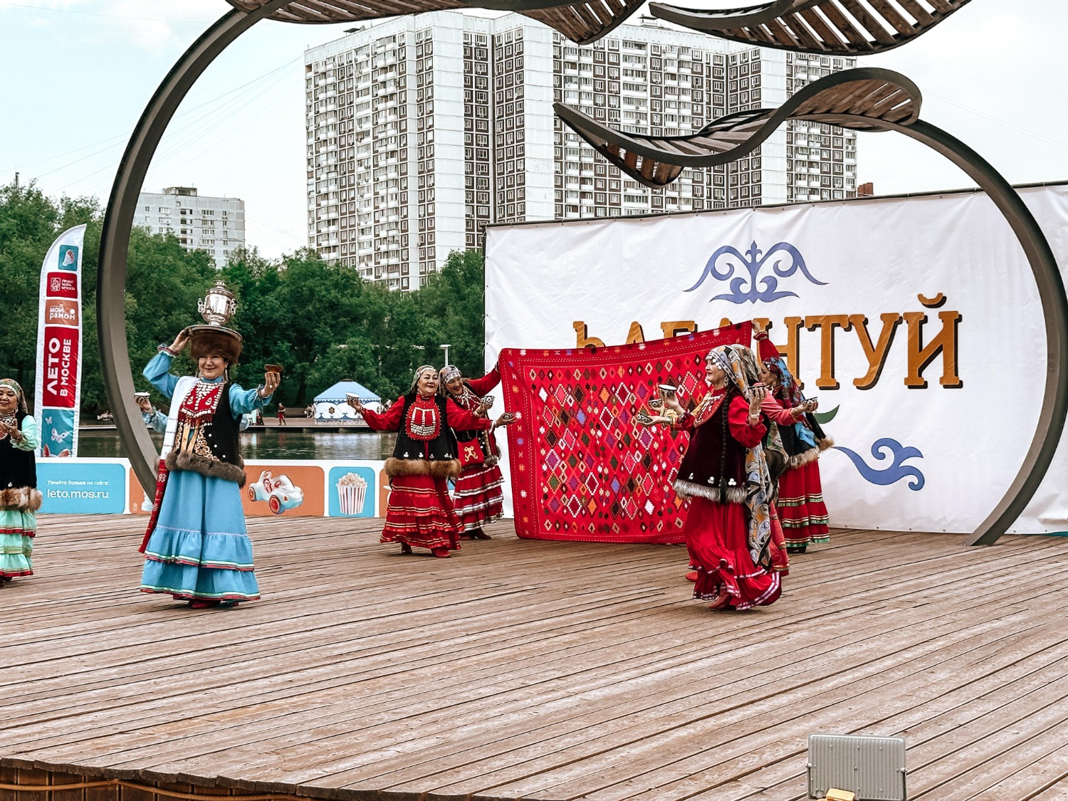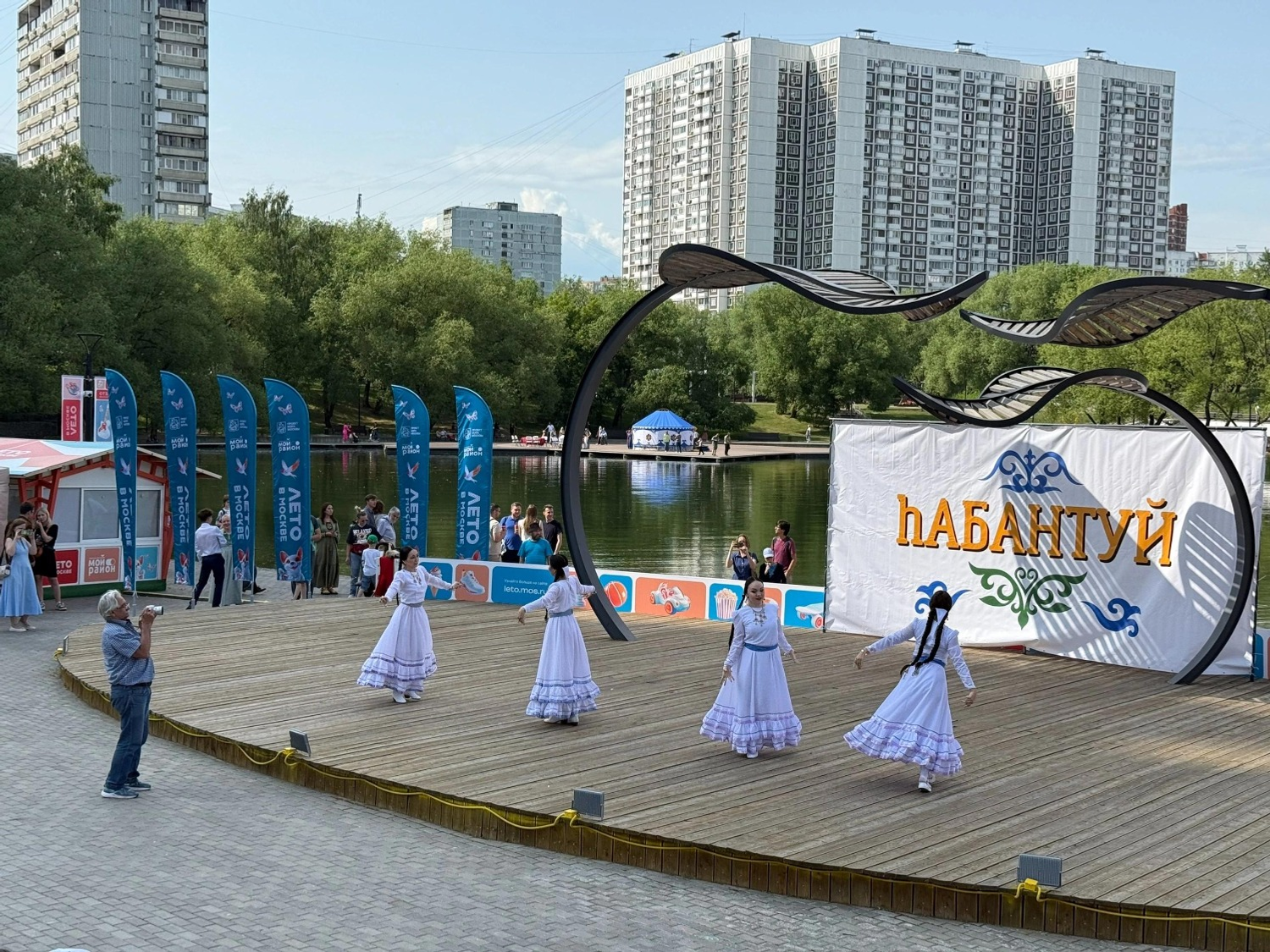 В центре пруда, на большом понтоне, была установлена юрта, создавая неповторимую национальную атмосферу. Внутреннее убранство рассказывало о быте башкирского народа. Особое внимание посетителей привлекла выставка национальных костюмов и предметов декоративно-прикладного искусства. Наряды можно было не только рассмотреть, но и примерить, сделав памятные фотографии.