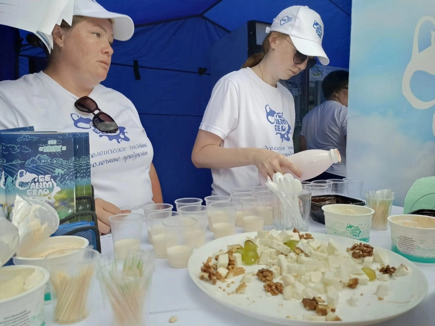 В этом году Республика Башкортостан приняла участие в народных гуляниях в расширенном формате. Помимо традиционных подворий, профессиональных коллективов, работала и выставка-продажа башкирской продукции и товаров. Месягутовский молочный комбинат организовал дегустацию своей вкусной продукции.
