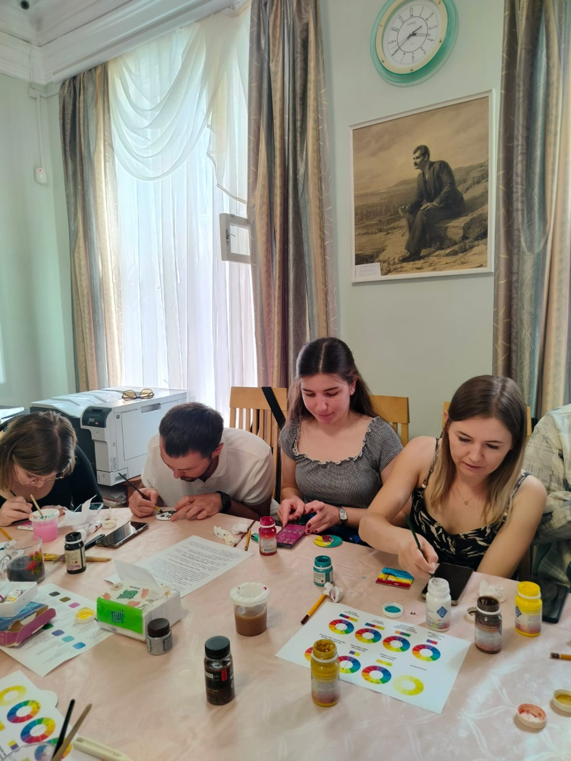 Во второй части мероприятия гости приняли участие в мастер-классе, где у них была возможность создать собственную мини-картину — сказочную иллюстрацию на холстах-магнитах, опираясь на основы композиции и гармонии цвета в рисунке.