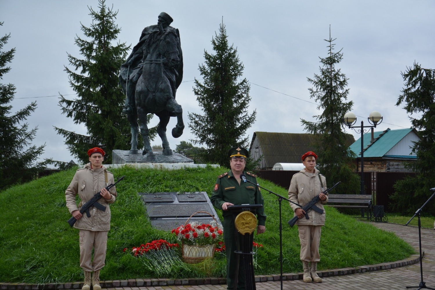 Торжественный митинг с возложением цветов к памятнику Герою России собрал жителей села, представителей администрации, ветеранов и юнармейцев. Мероприятие продолжилось в местном Доме культуры, где организовали тематическую выставку о боевом пути и личной истории комдива.
