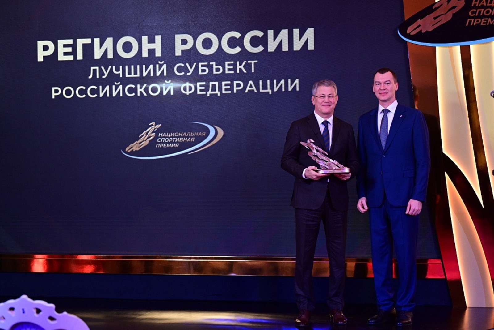 – Я с огромным, счастливым чувством повезу эту награду домой и передам её всем тем, кто имеет к этому отношение. Это тренеры, методисты, учителя физкультуры, наши великие спортсмены и начинающие мальчишки, девчонки. Потому что это прежде всего их заслуга, – подчеркнул руководитель региона. – А мы, в свою очередь, продолжим работать над тем, чтобы у ребят, которые приходят в залы, была возможность заниматься спортом, были прекрасные ФОКи, бассейны, дворцы – всё самое лучшее.