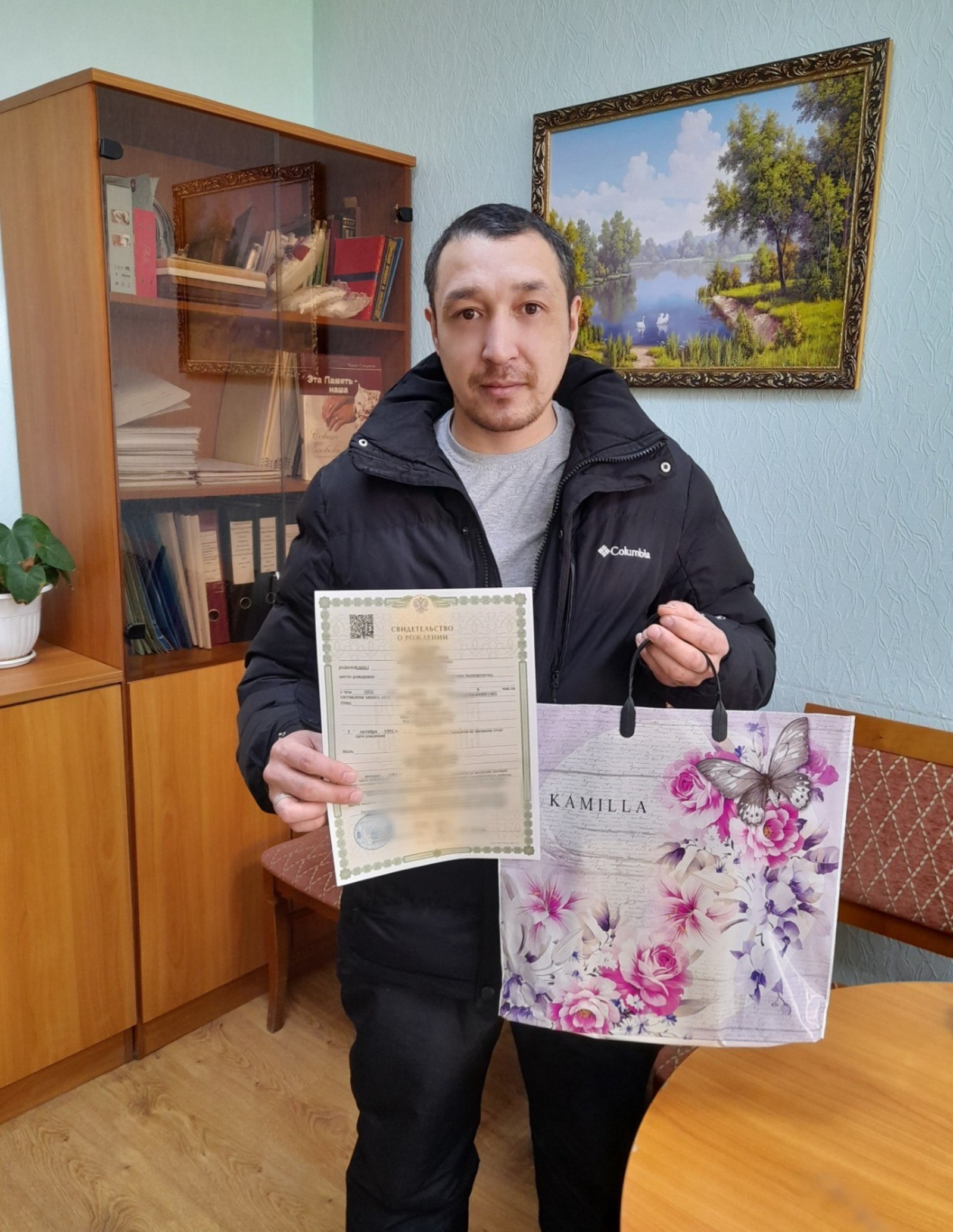 По сложившейся доброй традиции, сотрудники отдела ЗАГС поздравили отца с рождением дочери, вручив ему свидетельство о рождении – первый документ нового гражданина Российской Федерации, а также символический подарок.