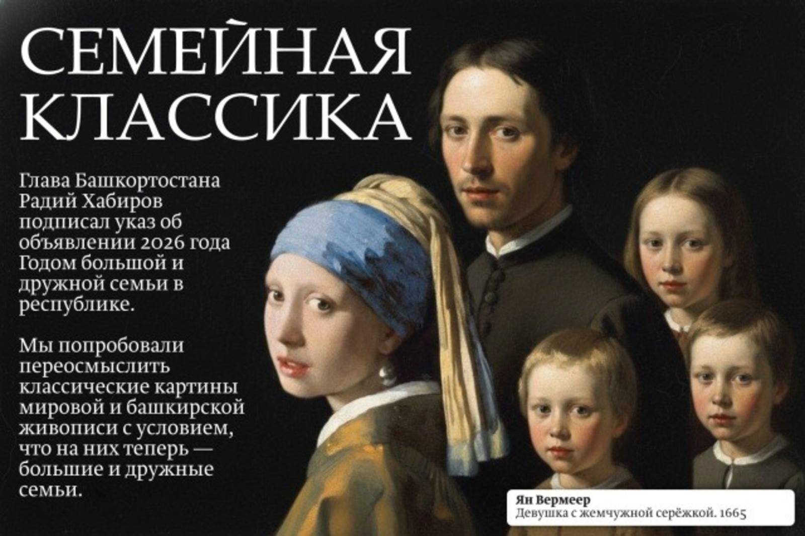 Эта часть нашей жизни настолько важна, что мы добавили большие дружные семьи в знакомые нам с детства картины — классические произведения мировой и башкирской живописи.