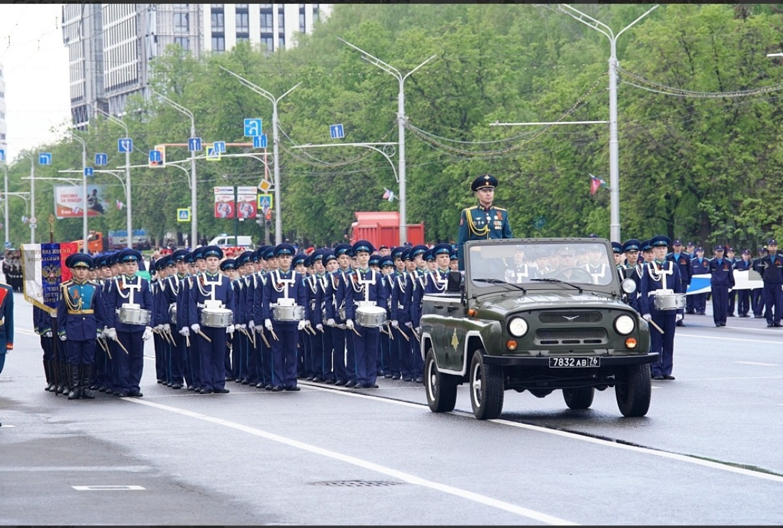 Парад, которым командовал полковник Ринат Латыпов, принял военный комиссар Башкортостана, начальник Уфимского территориального гарнизона, полковник Михаил Блажевич. Строевым шагом по площади имени Ленина прошёл 31 парадный расчёт – военнослужащие Уфимского гарнизона, участники специальной военной операции – бойцы мотострелкового полка «Башкортостан», сотрудники учреждений силовых структур, расположенных в Уфе, ветераны боевых действий и военной службы, курсанты и кадеты учебных заведений. Впервые в торжественном прохождении приняли участие парадные расчёты полицейских и шаймуратовских классов, ветеранов ВДВ и казаков.